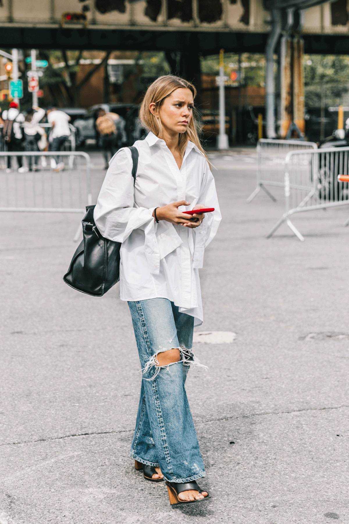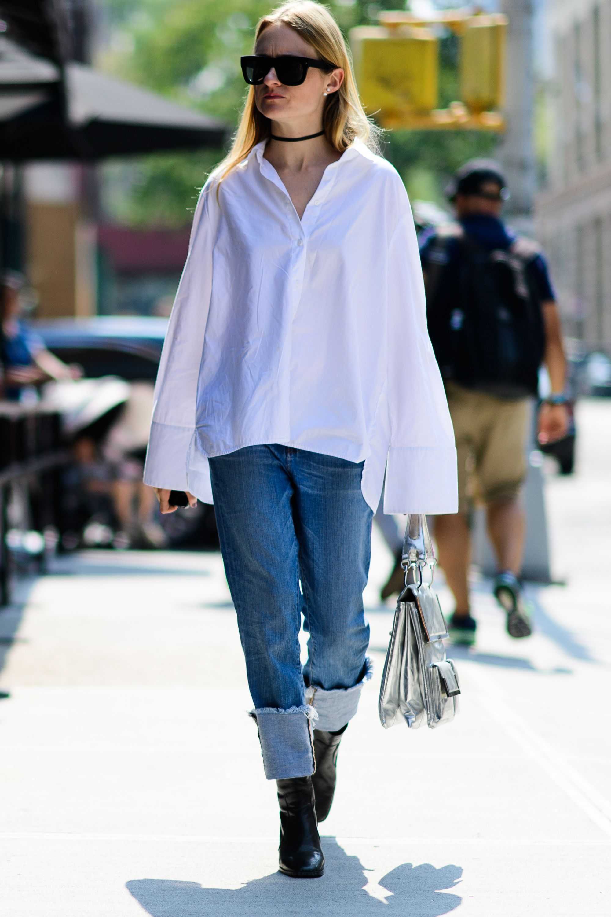 У рубашек оверсайз отсутствует четкая линия плеча. Плотный каркас вешалки добавит солидности, чего лучше избегать. Достаточно, чтобы рубашка была на два размера больше. Образец для такого фасона смело можно искать в мужском отделе. Но не забывайте шелковые блузки и женственные хлопковые рубашки.