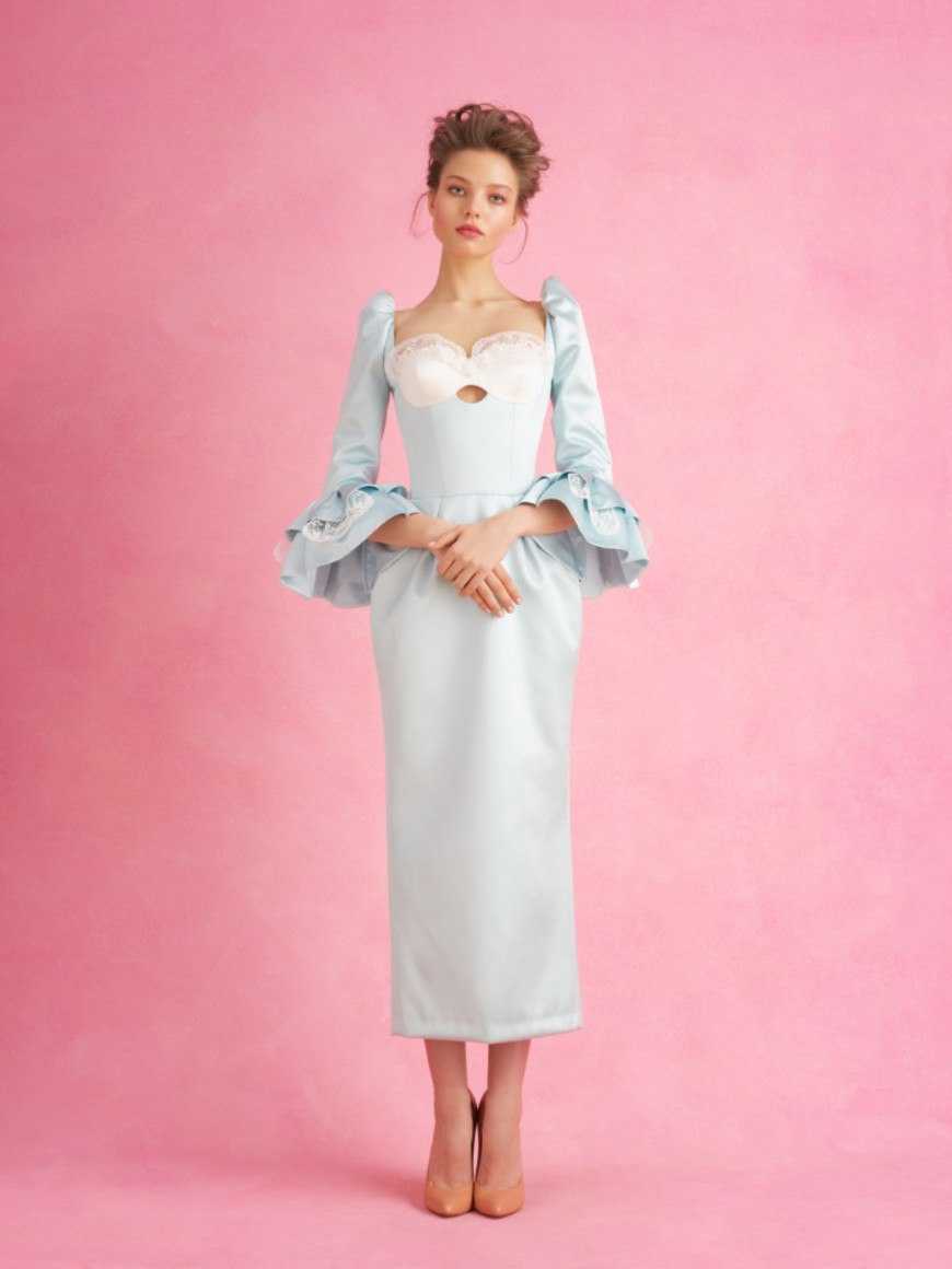 Свежий летний цвет, подходящий молодым девушкам и позволяющий выглядеть моложе дамам постарше. Наряд с голубой кружевной юбкой даст почувствовать себя красавицей и ощущать прохладу морского бриза в сильный зной.