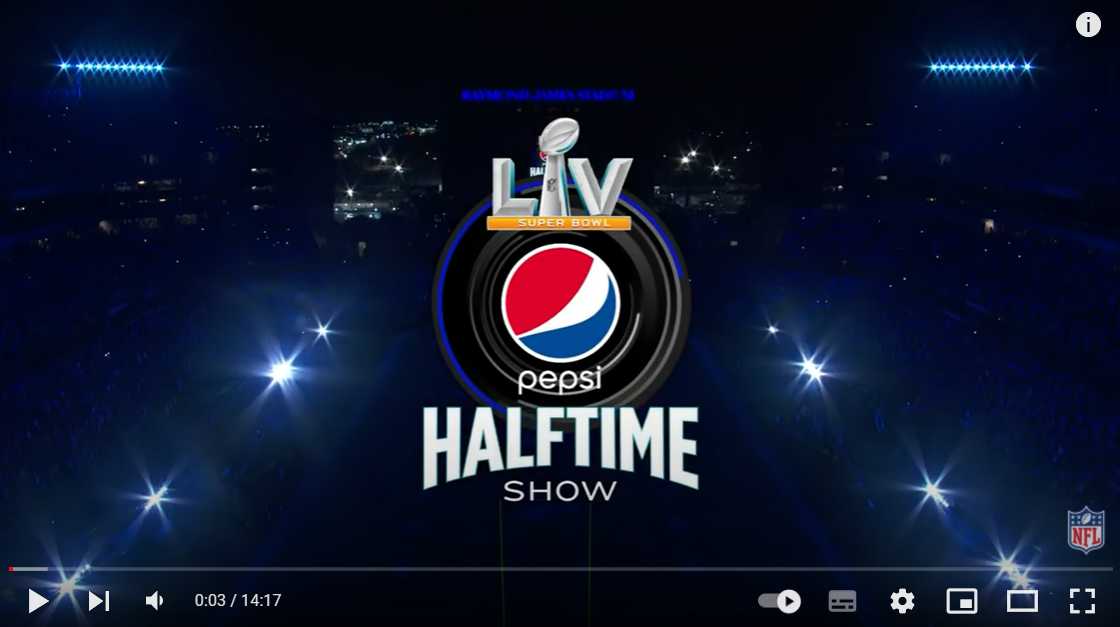 Pepsi Super Bowl LV Halftime Show (№4 среди самых популярных видео 2021 года в США). За счёт красно-сине-белой подсветки и дым-машины бренд словно растворён в самом воздухе мероприятия, а эффект субъективной камеры создаёт ощущение разрушенной четвёртой стены, когда граница между зрителем и исполнителем по ту сторону экрана оказывается стёртой.