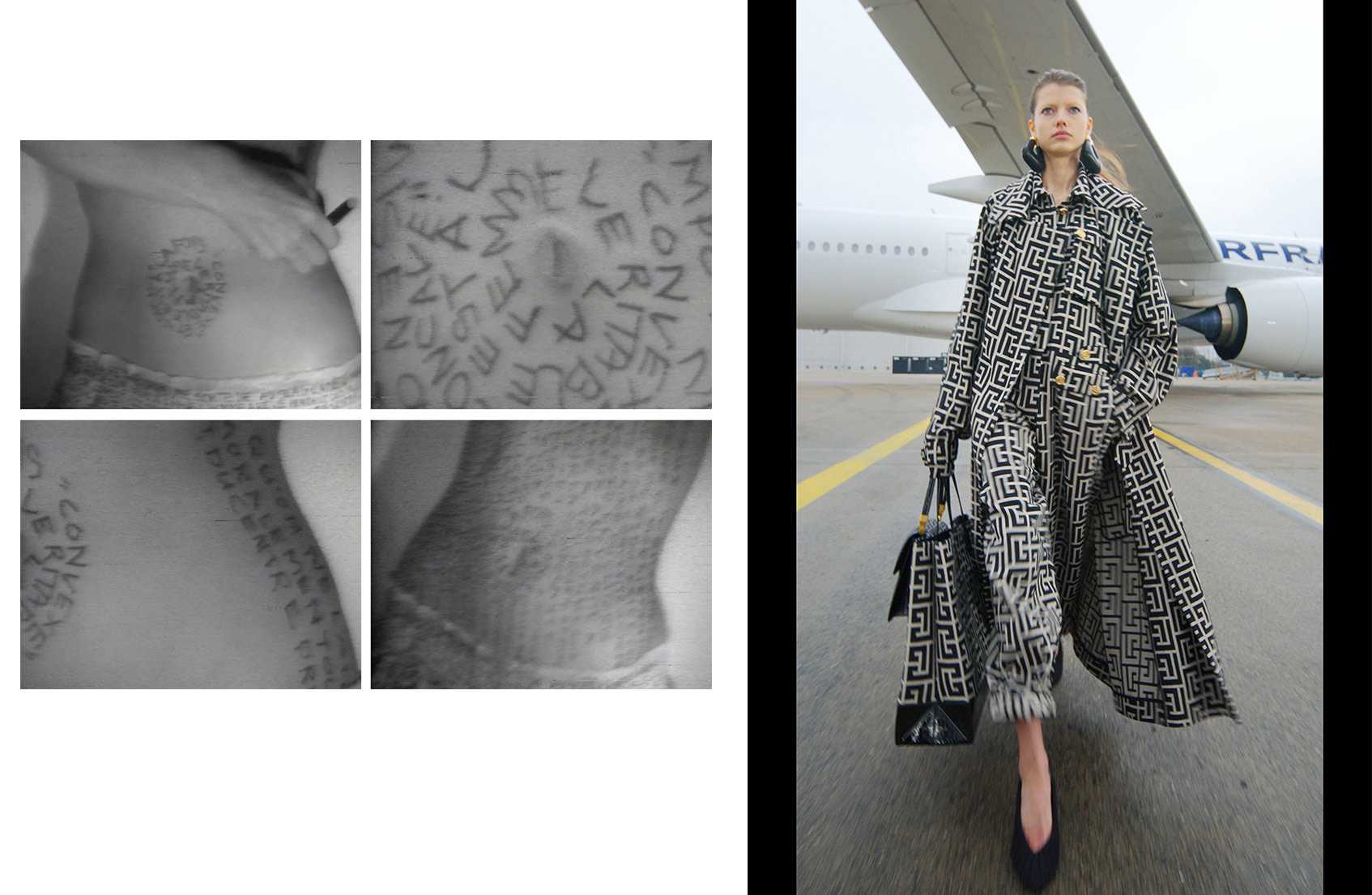 Еще один популярный жанр — каллиграфия на груди. Иногда из него вырастают неплохие художники. Например — Покрас Лампас, который с кем только не сотрудничал: от Comme des Garçons и Dries Van Noten до MAC. Впрочем, если буквы этого женского эксплуататора вошли в историю, то его модели так и остались безвестными.
