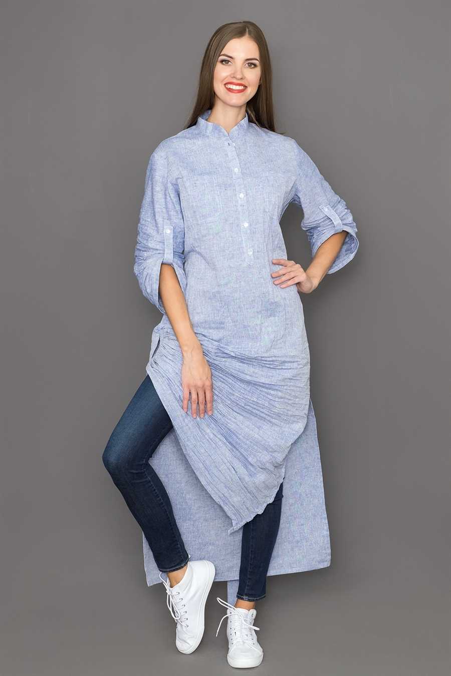 Рубашка-туника – это приталенная удлиненная рубашка с классическим верхом чаще всего длиной до середины бедра (реже ниже колена). Она может быть дополнена поясом, эффектно подчеркивающим талию. Также востребованы стильные расклешенные модели, они более популярны среди обладательниц пышных форм.