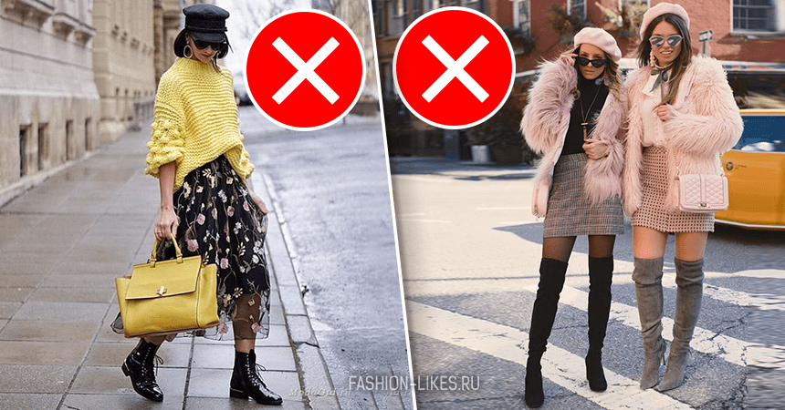 - Категорически не рекомендуется сочетать твидовую мини с ботфортами на шпильке.