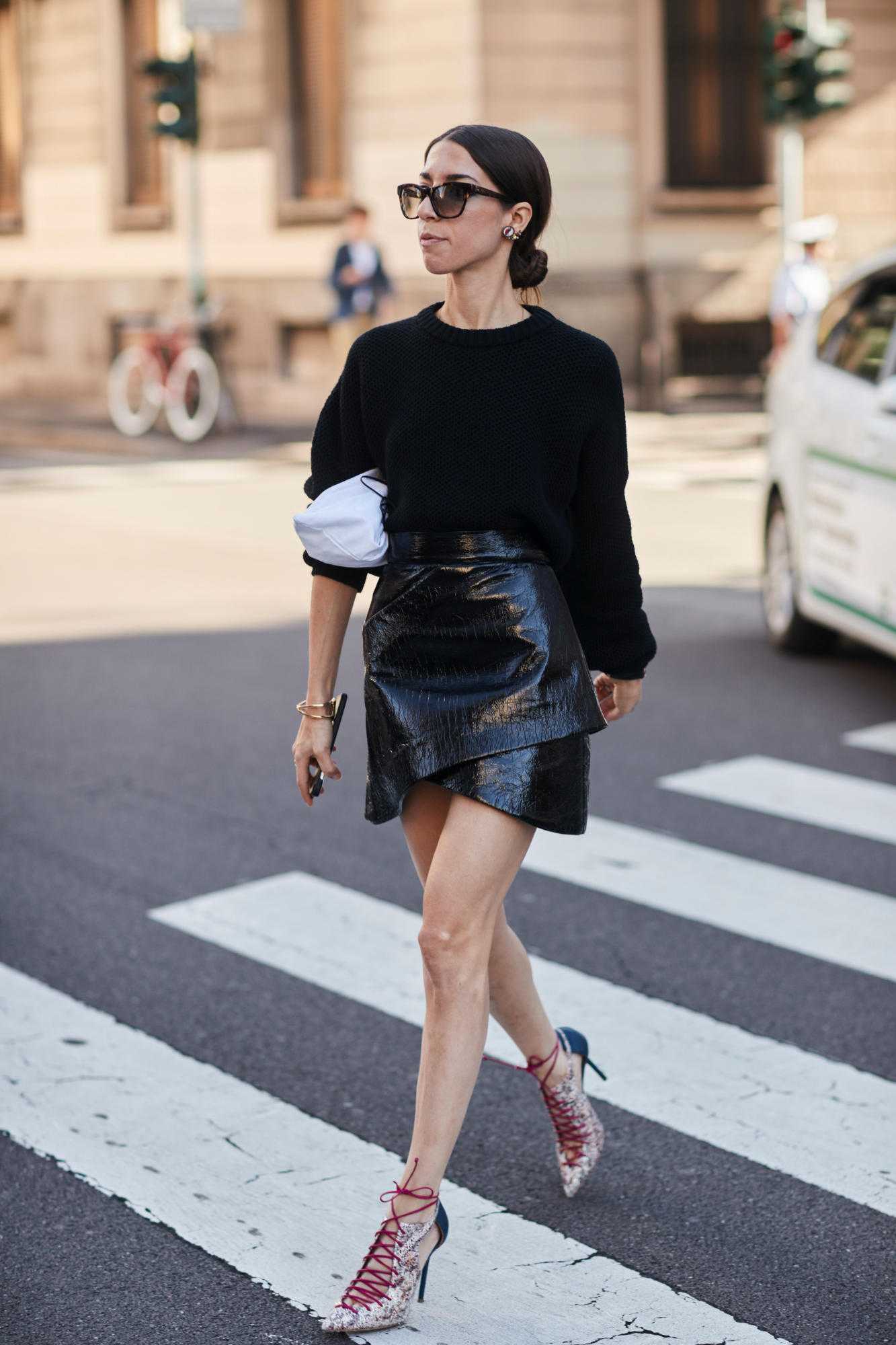 Короткие юбки позволят создать стильные луки с ботинками, конверсами, сапогами, ботфортами и туфлями, что делает их очень популярными в приближающемся сезоне. Завершить образ можно благодаря бомберу, куртки-косухи, стильного жакета или удлиненного пиджака, а также простой белой майкой. В дополнение стоит выбрать интересный клатч или маленькую сумку.
