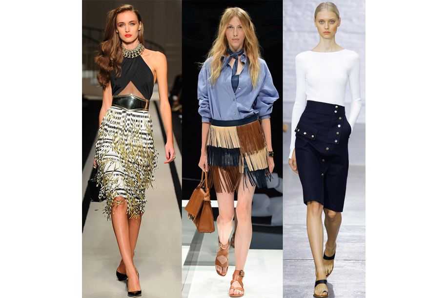 Для стилей кэжуал, спорт-шик и стрит-стайл идеально подойдут юбки средней длины, выполненные из джинсовых тканей. Женственность моделям придают разнообразные отделочные решения – бахрома, пуговицы, разрезы и запах.