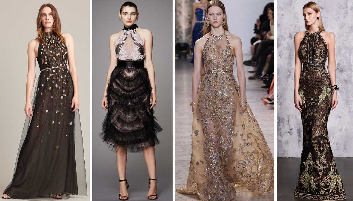 Яркими поклонниками такого фасона оказался дом Chanel, предлагающий ахроматичный футляр с перьевым декором. La Perla подчеркивает женственность образа лифом и юбкой с высокой талией – этот вариант подойдет девушкам, которые хотят продемонстрировать результаты упорного посещения фитнес-клуба. Elie Saab склоняется к лаконичности черного платья без дополнительного декора. Впрочем, вестерн-шик, которым наполнен образ, и вкрапления золотых аксессуаров позволяют добиться максимальной эффектности лука.