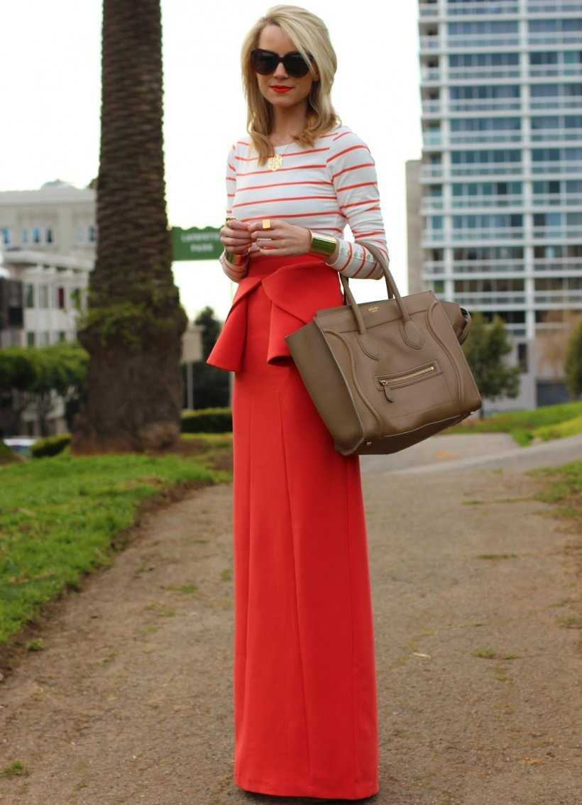 Юбки длины макси, а также модели миди до середины голени эффектно смотрятся с рубашками. Как и в случае с блузами, можно получить образы разной стилистической направленности – от сдержанного делового или преппи до провокационного хиппи.