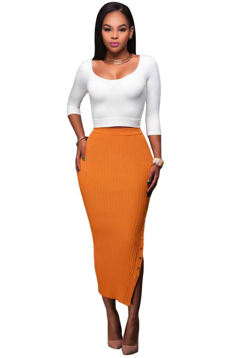 Также хочется отметить, что использование различных принтов тоже находиться под запретом, чтобы не получить безвкусный и разрозненный вид, потому что сама по себе оранжевая юбка является достаточно ярким аксессуаром и не требует дополнений.