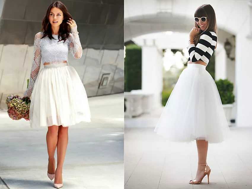 - Пышная юбочка превращает любую девушку в принцессу (или королеву, если хотите). Если вы дополните ее белым свитером и кроссовками, то сможете отправиться в таком модном образе на прогулку. Для вечернего выхода приберегите сочетание с кружевным топом или модной блузкой.