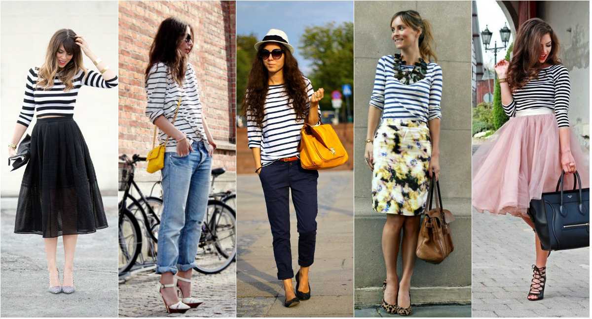 Классические женские тельняшки-футболки и лонгсливы имеют еще больше вариантов сочетаний: