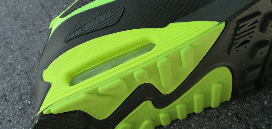 Компания Найк производит подошву только из высококачественных материалов. Поверхность подошвы имеет приближенную к матовой структуру. Так же она должна быть гибкой и немного эластичной, ни одна фирма не будет делать кроссовки с тяжелой и «дубовой» подошвой в 2016 году. Не даром ходят легенды об амортизационных свойствах «аирмаксов», что достигается именно за счет подошвы и запатентованной технологии Nike Air.