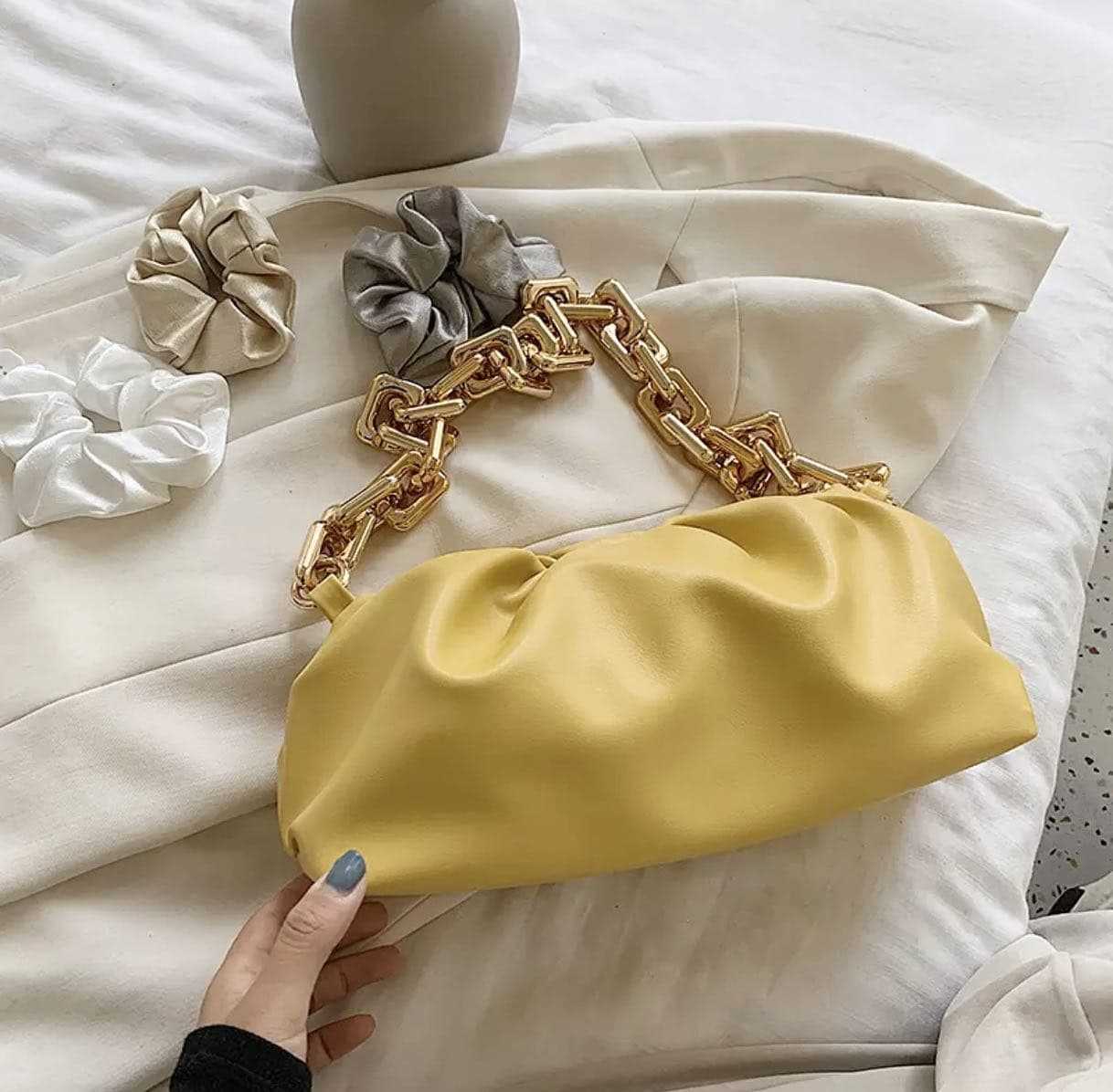 - лямка в виде цепочки из металла, будто на сумке от Chanel;