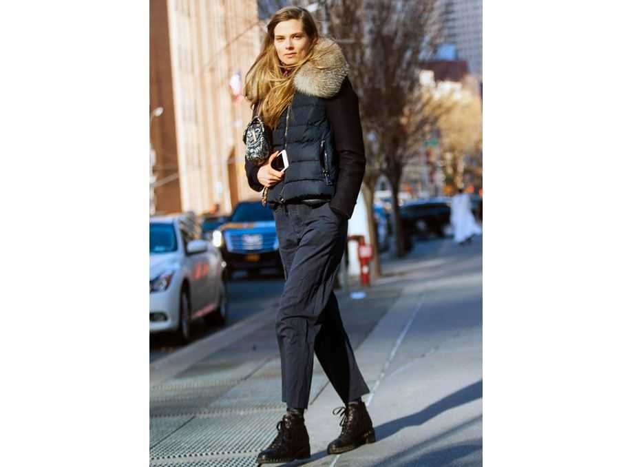 Из новейших трендов – неутепленные пуховики по стандартам зимних коллекций: модели оверсайз полностью скрывают фигуру, делая акцент именно на необычной форме куртки, полюбившиеся многим серебристые и золотые цвета придадут вам сияния и блеска. Иной популярный вариант – укороченная, объемная модель. На фоне широкого верха куртки бедра визуально сильно сужаются, добавив к образу массивных ботинок с небольшим каблуком сделаете фигуру еще более хрупкой.
