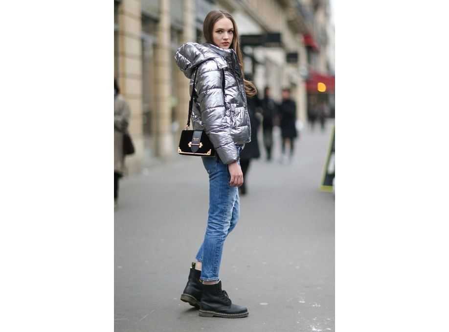 Максимально эффектно будет выглядеть модница в серебристой, золотистой или бронзовой курточке-пуховике – эта палитра на сегодняшний день среди фаворитов.