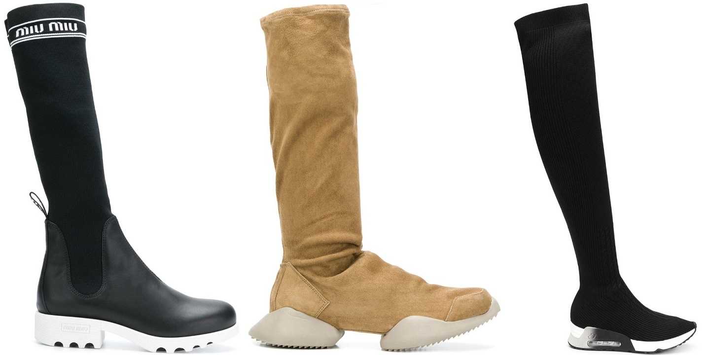 Сапоги-чулки и ботфорты согреют в морозную погоду, позволяя при этом надеть короткие юбки или коктейльные платья. Среди них много и латексных вариантов, которые не согревают зимой, но зато весьма практичны в непогоду, то есть в дождливую. Ведь латекс не промокает и достаточно прост в уходе. Роскошные сапоги-чулки с оборками и воланами вы можете увидеть в коллекциях Rodarte, Fendi.
