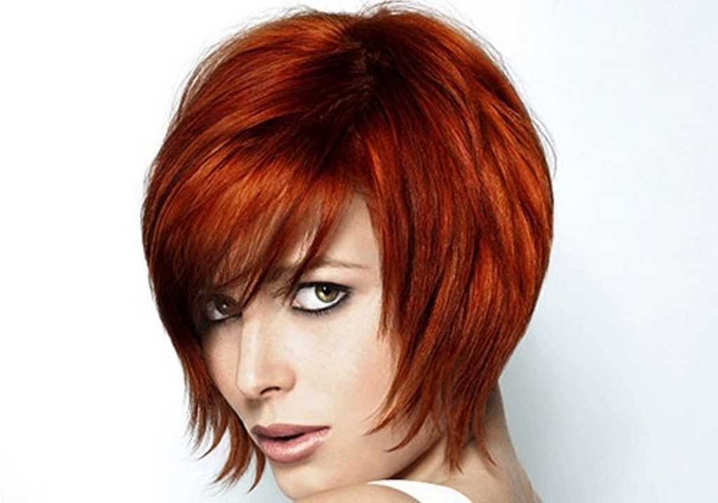 На короткие густые волосы идеальны варианты с асимметричной челкой, небольшим удлинением прядей или боб-каре шапочка.
