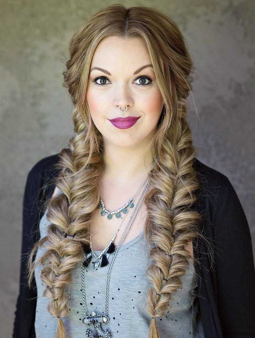 «Рыбий хвост» будет уместен с любым стилем, а различные вариации его исполнения позволяют создавать модные образы под разные мероприятия. Выигрышнее всего подобное плетение смотрится с женственными нарядами, подчеркивая романтичность и утонченность обладательницы. На фото звездные дивы из Голливуда, доказывающие, что такая прическа подходит идеально даже к самому изысканному стилю.