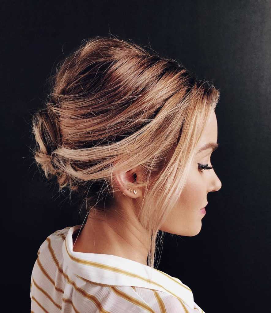 Причёска очень элегантная и может быть дополнена оригинальной заколкой. Оставшаяся длина волос может быть заплетена в косу. А возможен вариант и с хвостом, если вам так захочется. Можно её разнообразить и чёлкой, если вы её носите.