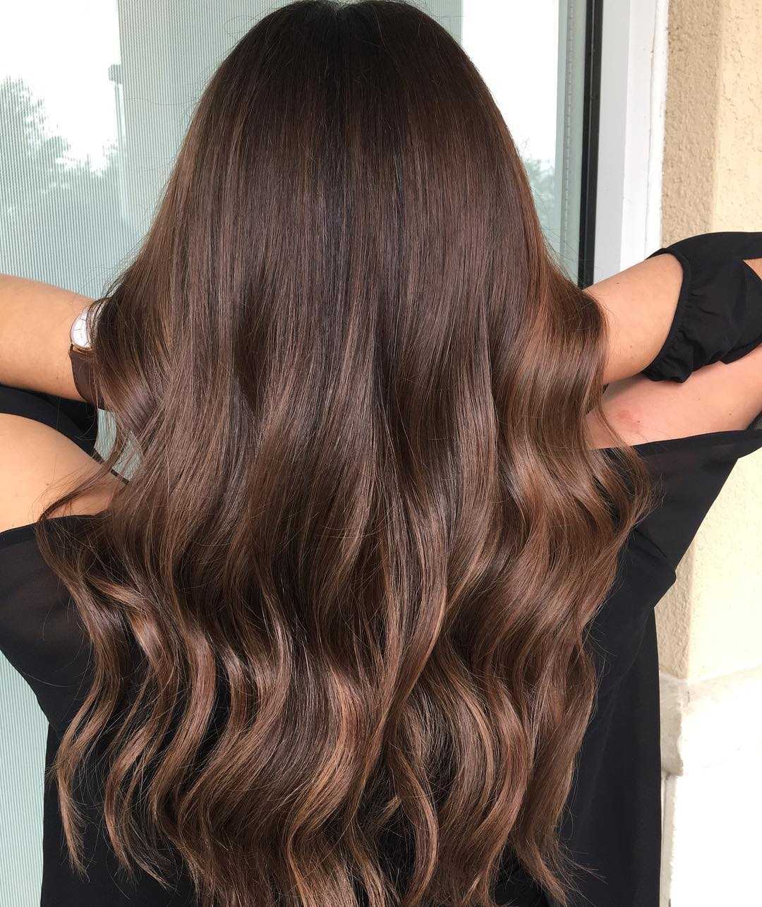Модными цветами волос в 2021 году для женщин с карими глазами были призваны все шоколадные оттенки.