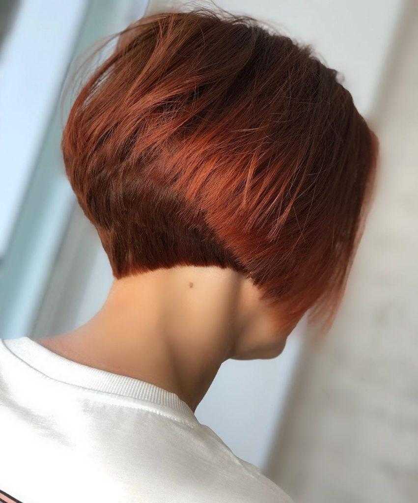 Вид сзади на стрижку вызывает восхищение перемешанное со страхом, ведь часть волос будет выбрита, что не у всех хватит смелости сделать. Но благодаря ножке открывается прекрасный вид на шею сзади, что выглядит очень красиво, если вы подбираете на лето открытые платья, топы или прогуливаетесь по пляжу в купальнике.