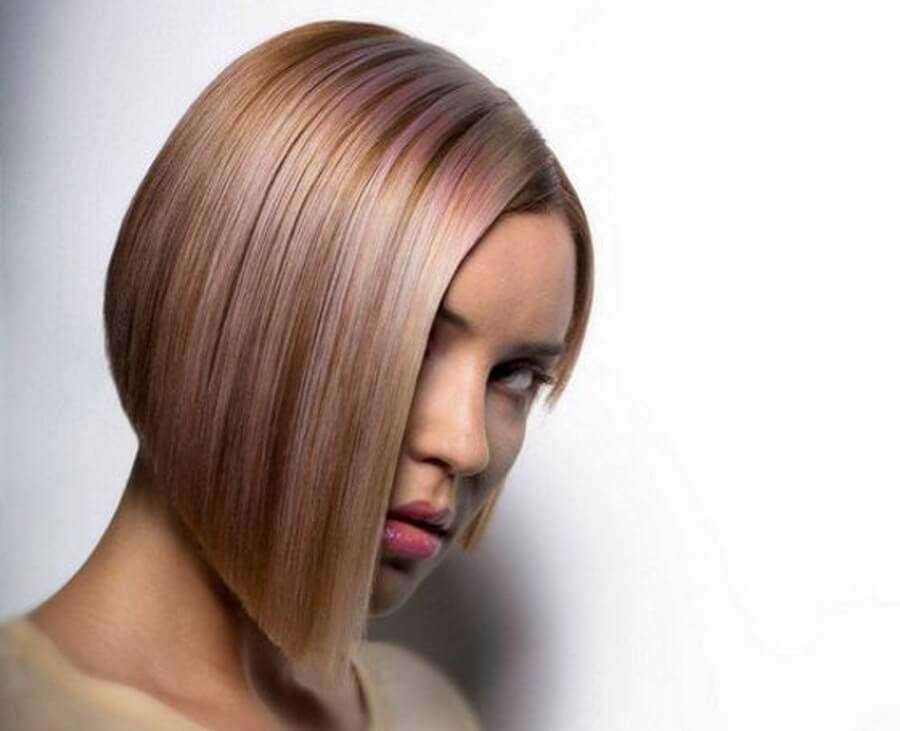 Асимметричный боб. Если волосы тонкие или волнистые, лучше нет варианта, чем этот. Он к лицу с овальной и удлиненной формой. Очень занятым леди асимметричный боб поможет быть всегда в норме, потому что не требует сложного ухода.