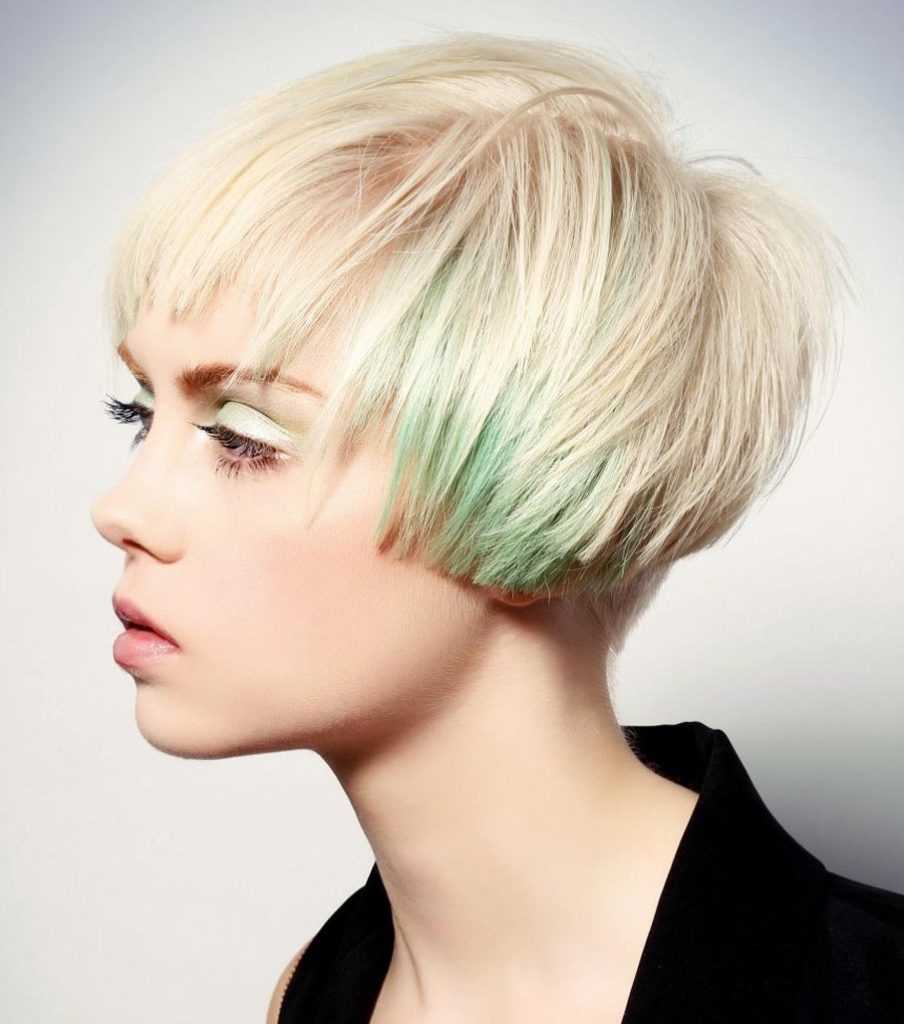 Женщинам, желающим показать с помощью прически свою индивидуальность, мастера предлагают выделить отдельным цветом несколько прядей. Вариант выделения локонов не ограничивает клиентов в цветовой гамме. Доступна покраска волос в любой предпочитаемый цвет, но особо трендово смотрятся локоны ярко-розового, фиолетового и изумрудно-зеленого оттенков.