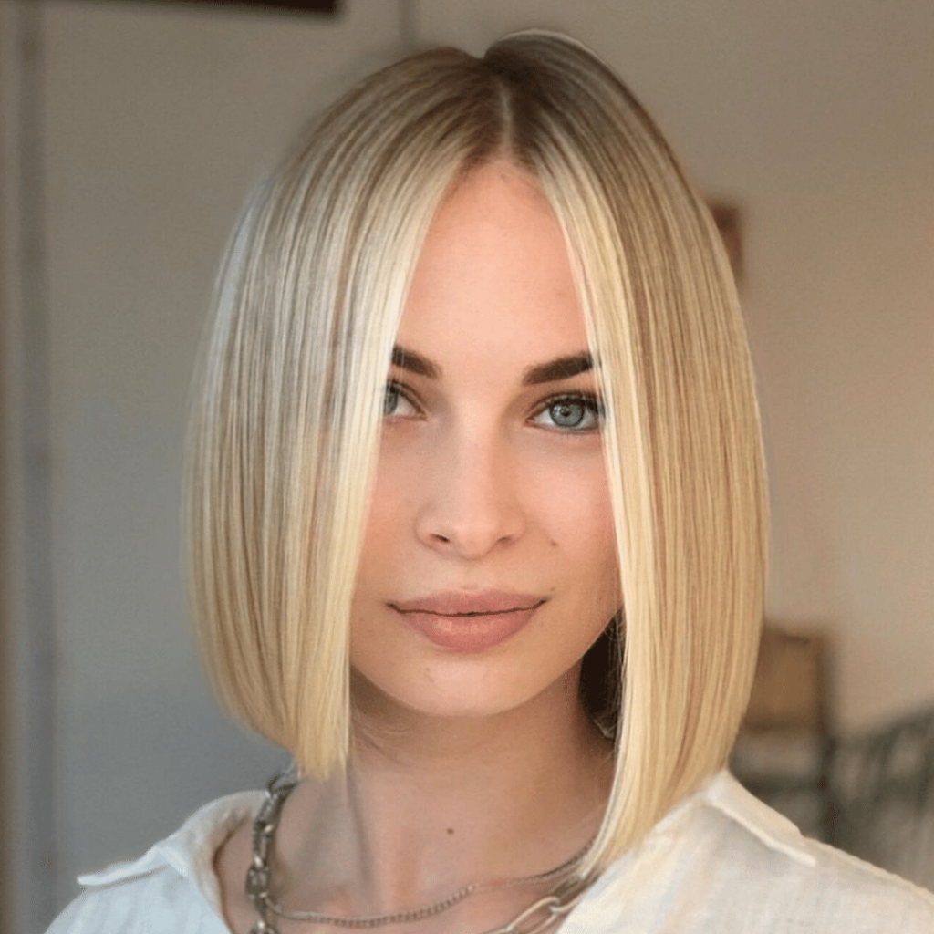 Отличительной особенностью квадратного типа лица является хорошо развитая линия челюсти. Поэтому выбирайте длину до скул и ниже, добавляя к ней челку и мягкие слои вокруг челюсти, чтобы смягчить «углы квадрата». Лучше делать косую челку.