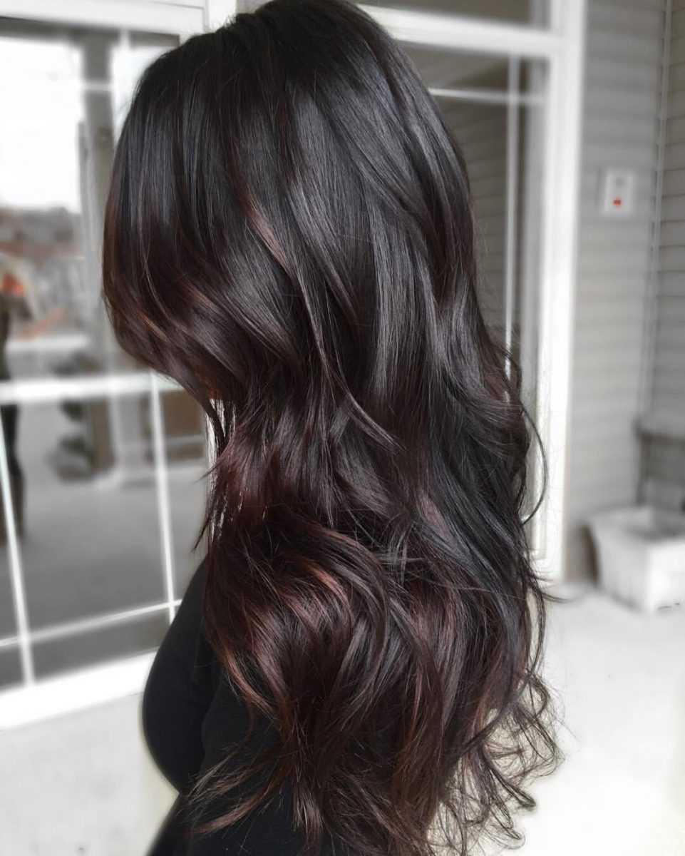 Поскольку главный тренд текущего сезона – естественность, брюнетки вольны вообще не менять цвет своих волос, угольно-чёрные – они входят в топ наиболее популярных в 2019 – 2020-ом году. Но если хочется чего-то новенького, решайтесь на добавление к основному оттенку чего-то более яркого, заметного – бургунди, вишня, бордо как основной или в переливах и плавных переходах. Интересное решение для брюнеток – переход от коричневых оттенков к сливочно-клубничному на кончиках.