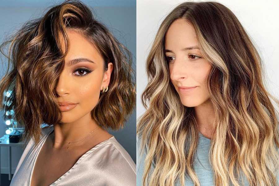 Длинные волосы можно окрашивать в любой технике растяжки, а удлиненные волнистые и кудрявые волосы украсит переход цвета в технике балаяж и шатуш с бликами.
