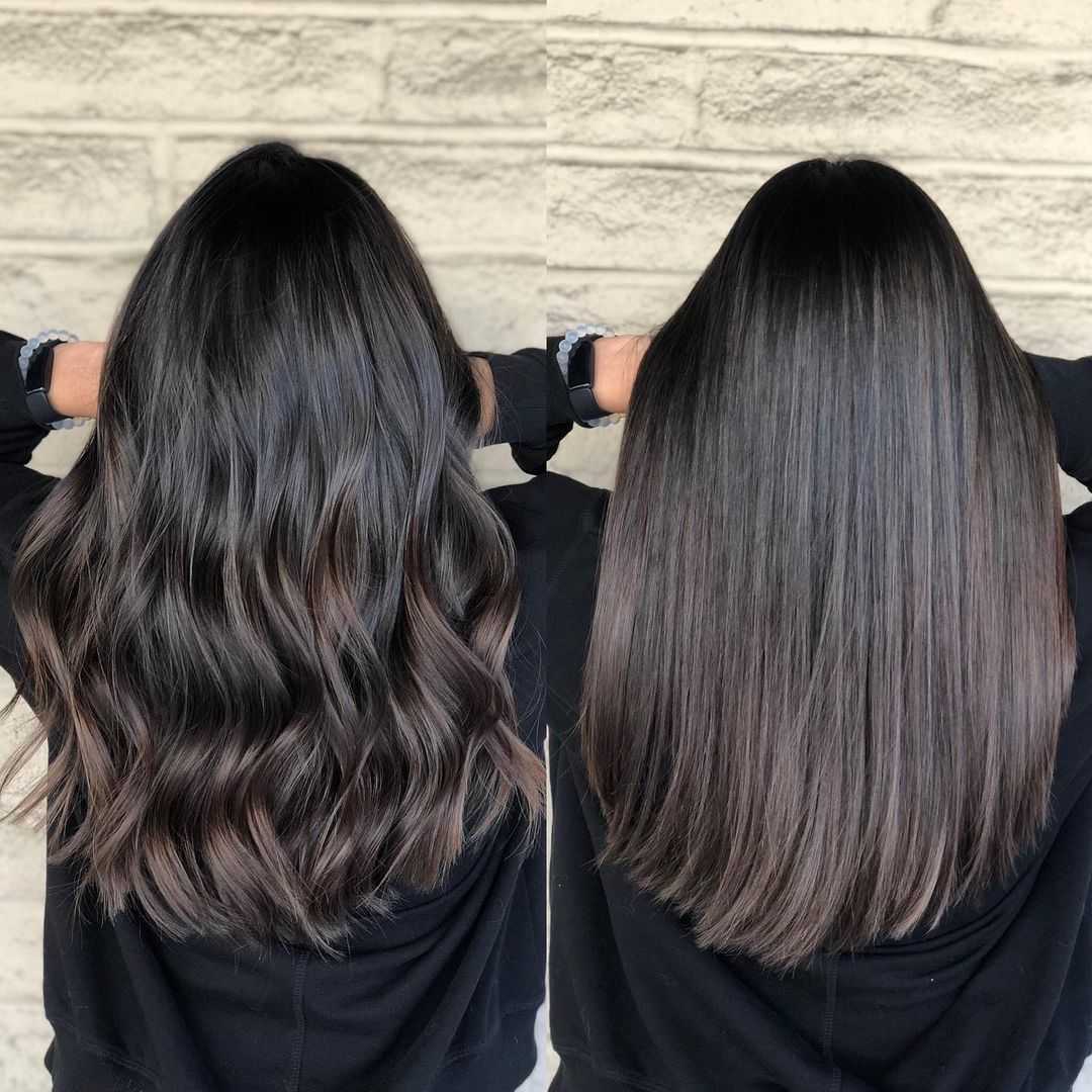 Рассмотрим, как происходит профессиональное окрашивание волос омбре для брюнеток с удлинением: