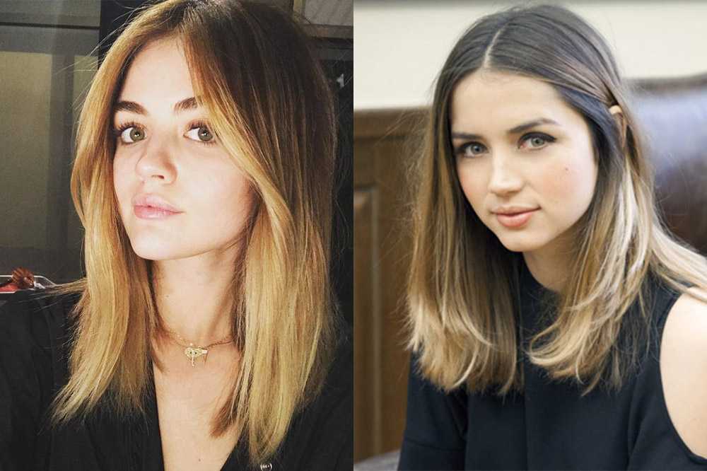 - Средние. Обычно большинство девушек имеют длину волос до плеч или подбородка. Распространёнными причёсками выступают боб с удлинением и каре. Для волос средней длины часто выбирают брондирование или классическое омбре, хотя не стоит забывать и о бликующем виде.