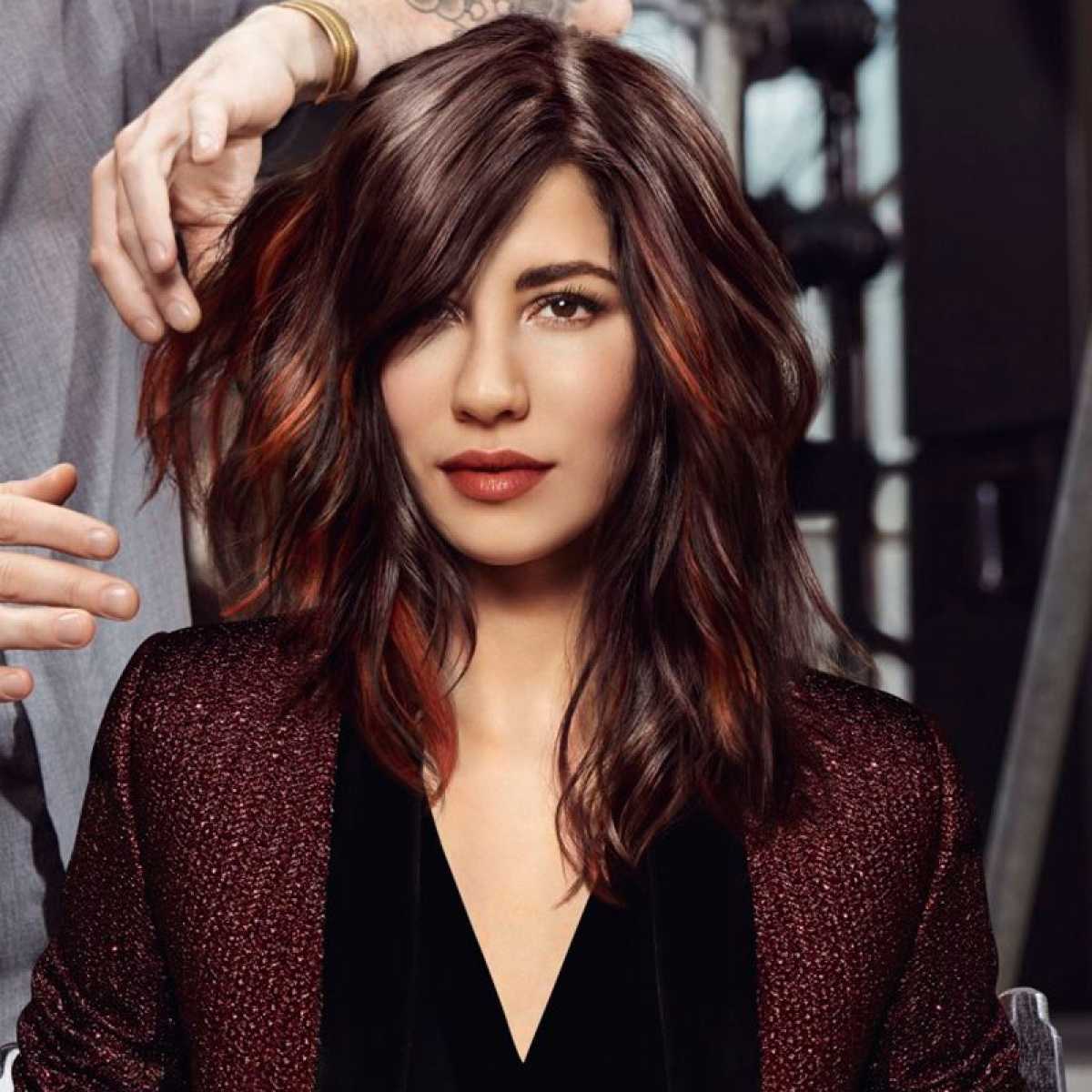 Многие известные брюнетки уже попробовали технику «the money piece» — чаще всего она делается на каштановых волосах. Суть метода в том, что только пара прядей около лица делается светлее остальных. Такое окрашивание быстрое, малозатратное и не травмирует волосы.