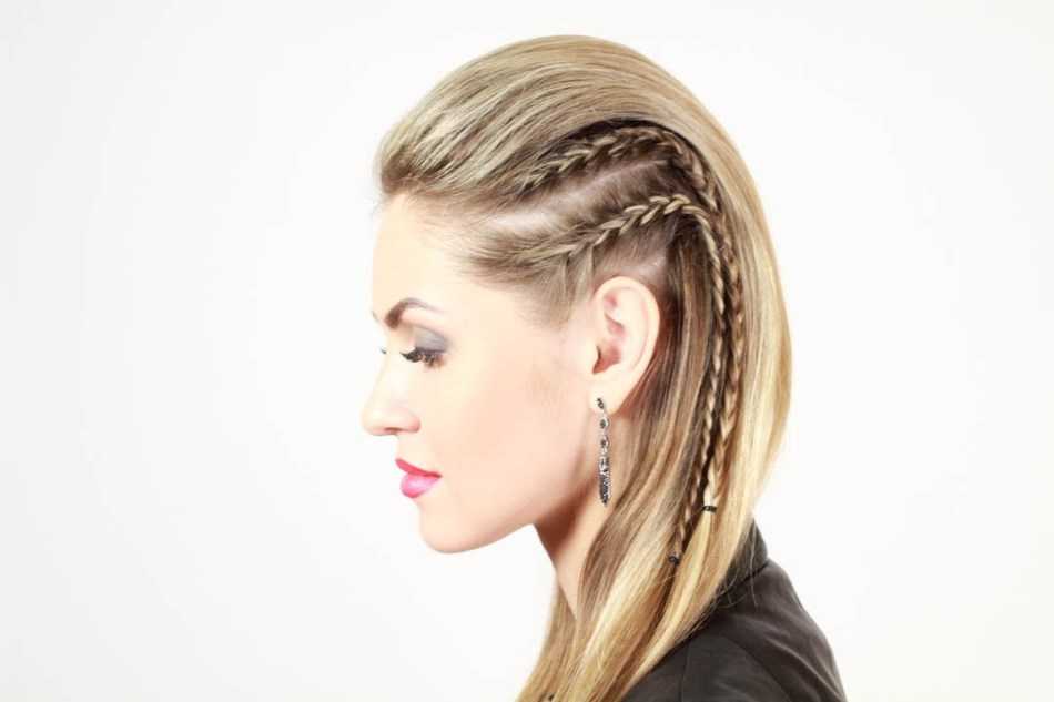 Для следующего варианта потребуется с одной стороны заплести несколько небольших косичек, а с другой — обработать волосы муссом или пенкой таким образом, чтобы они были слегка взъерошены.