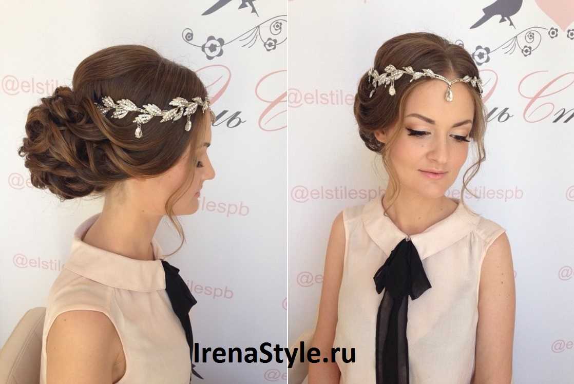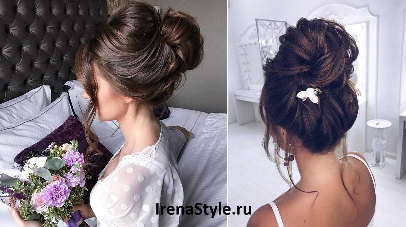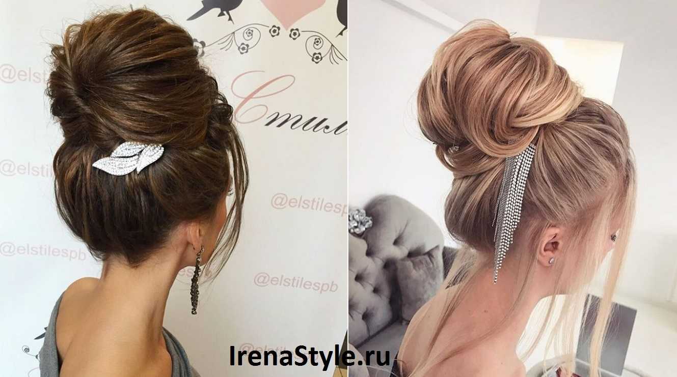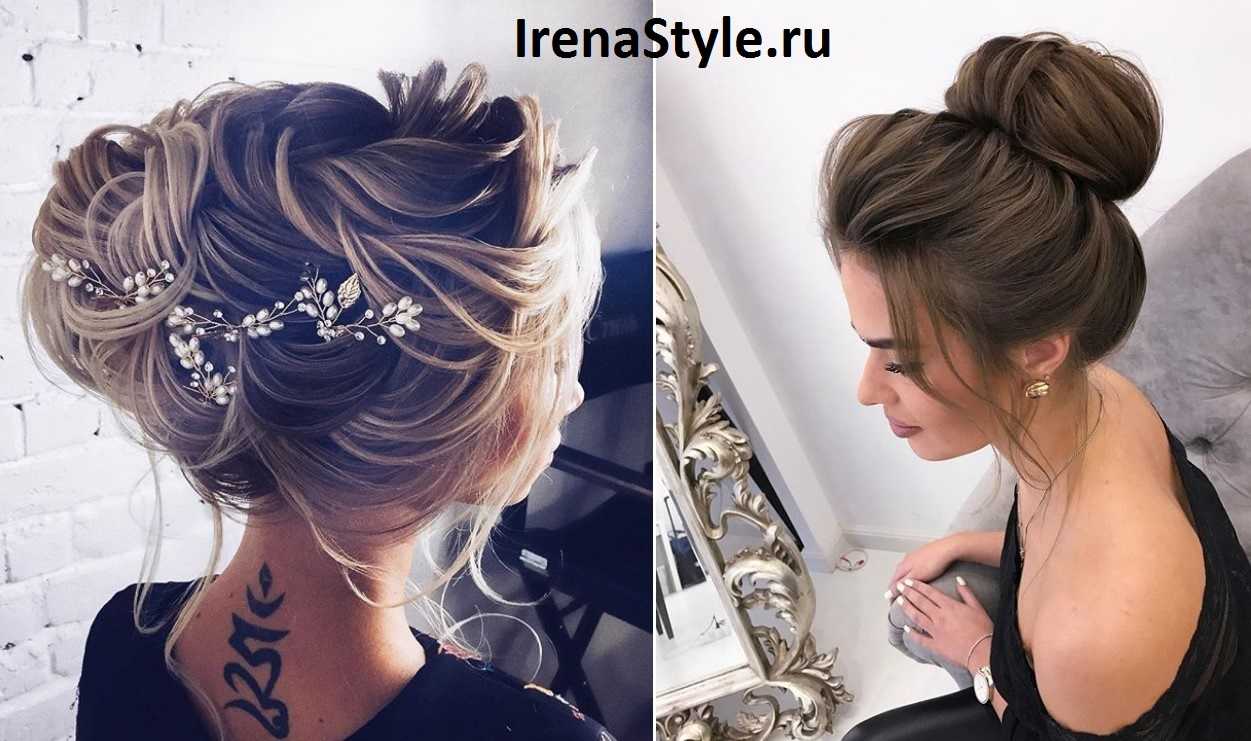 - Высокие. Длинные и средние пряди, собранные в пучок, смотрятся нарядно и торжественно. Бусины, красивые заколки с камушками идеальны в качестве украшения. Особо стоит отметить высокие пучки, полусобранные хвосты, и высоко поднятые волосы с закрученными локонами.