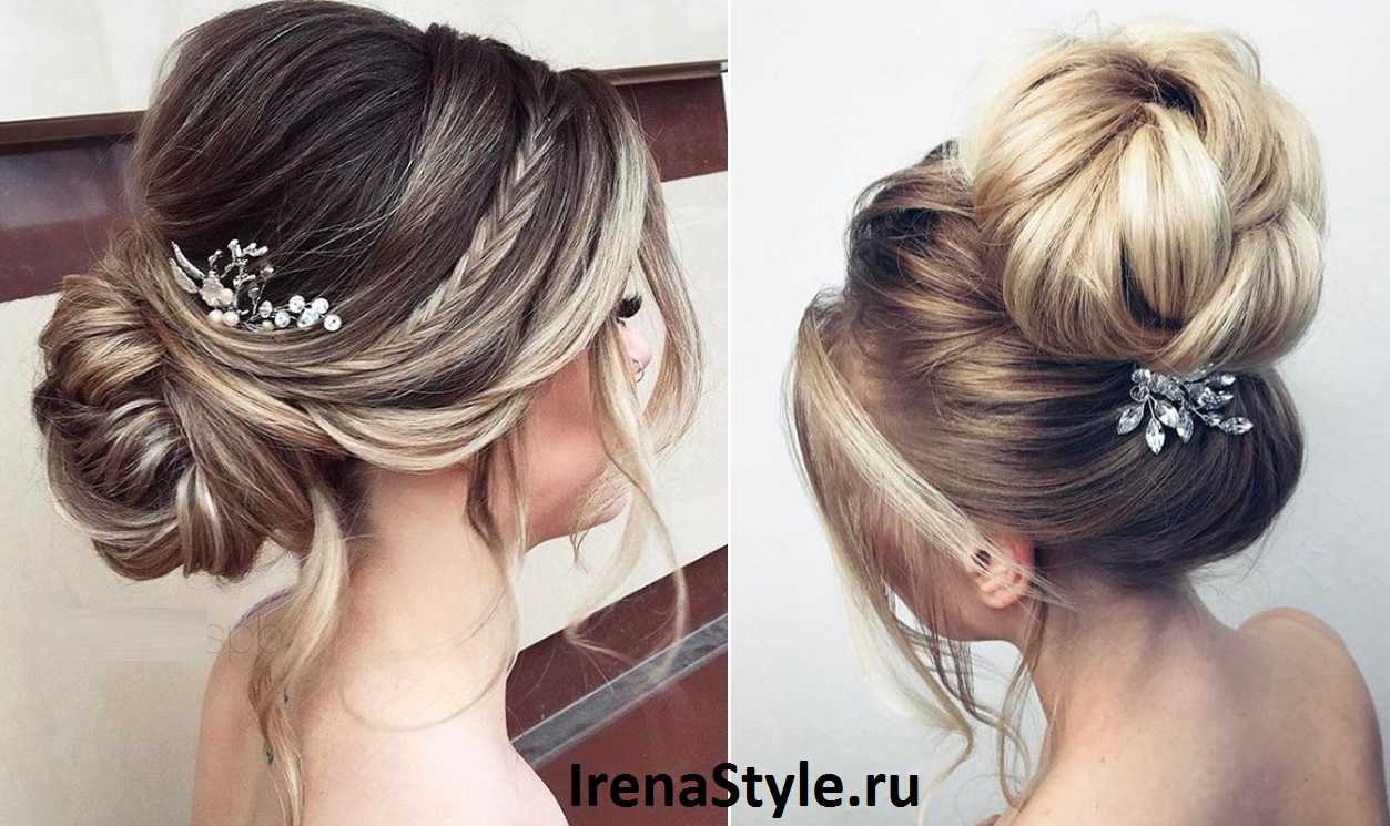 Это очень элегантная и женственная прическа, которая идеально подойдет для выпускного бала. Есть множество ее вариаций. Можно сделать гладкий пучок, пучок с косичками. В качестве украшений можно использовать живые цветы, банты или ленты, необычные заколки.