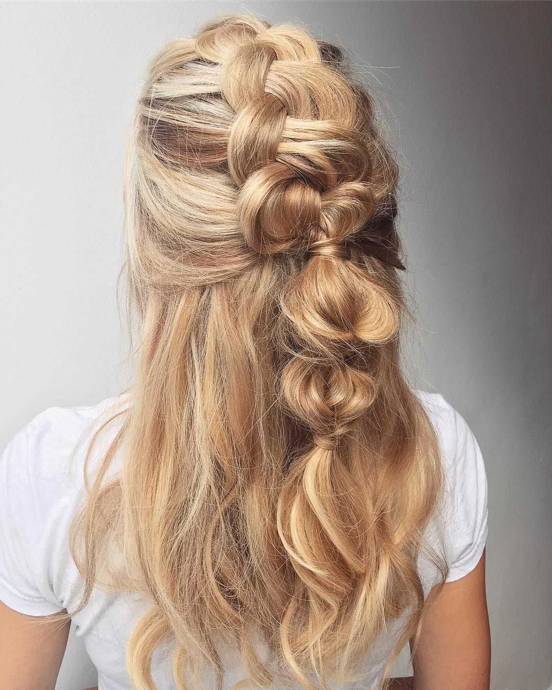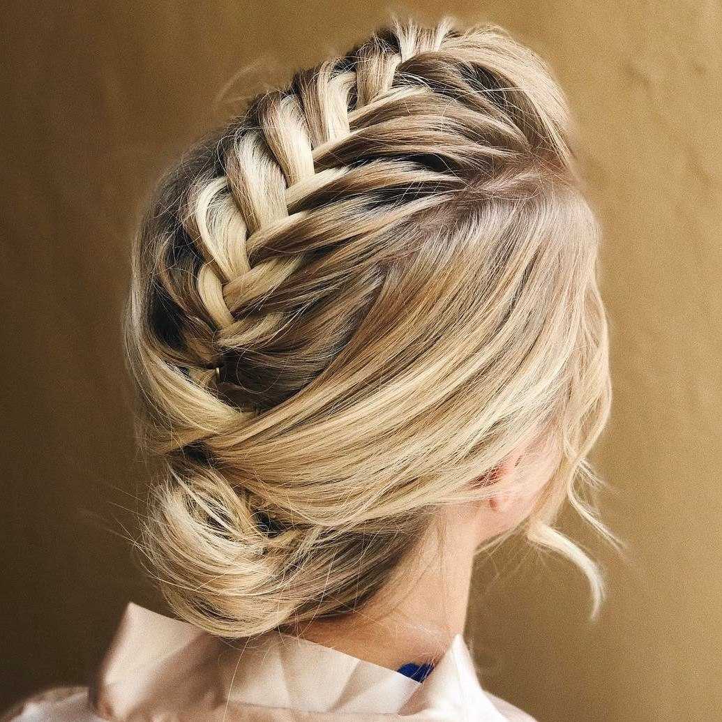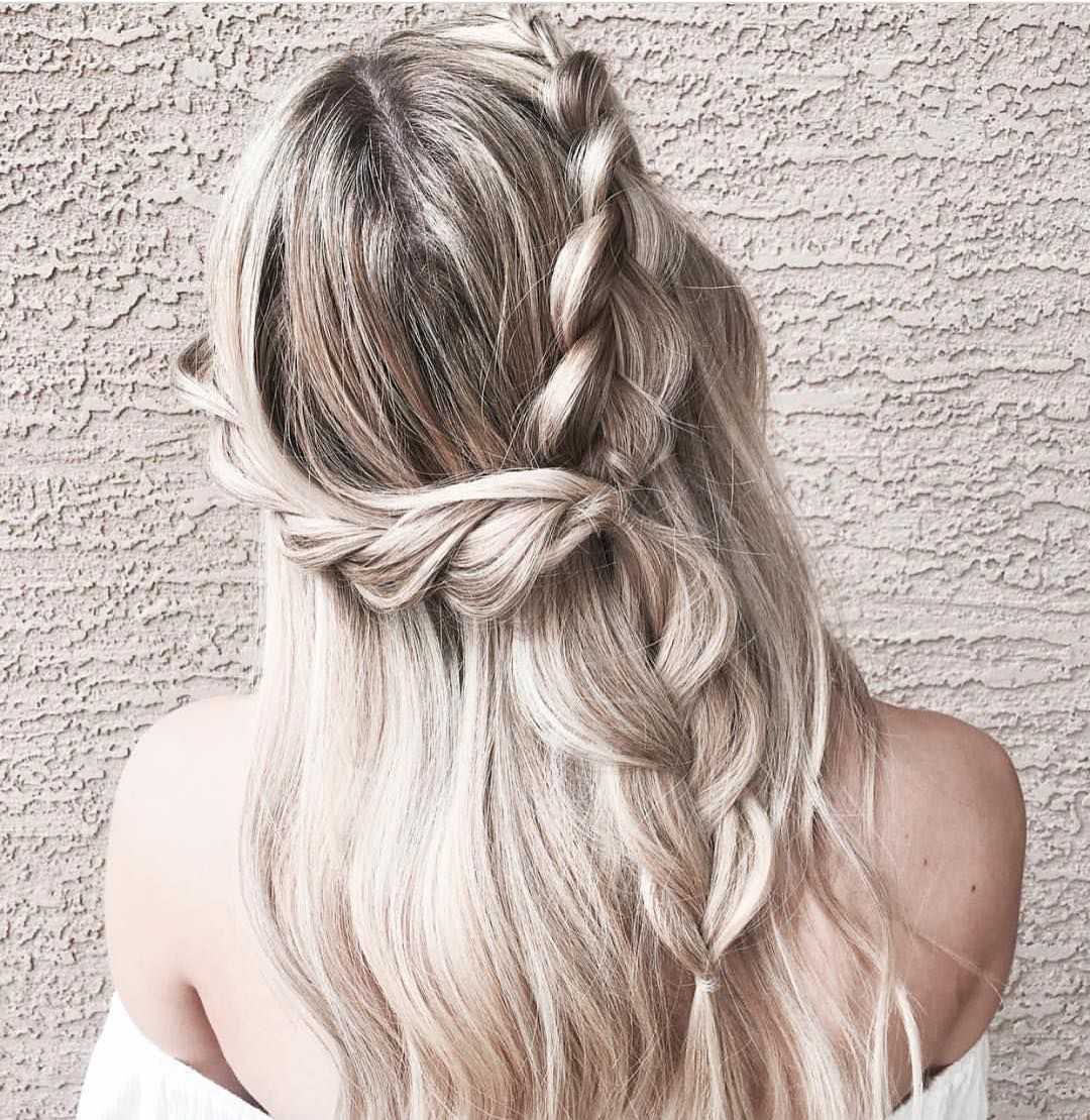 Простое плетение с тремя прядями в прошлом, на его смену пришли косы «рыбий хвост», жгуты, сложное плетение с объемными прядями. Если ваши волосы чуть короче средней длины, то рискните выполнить укладку набок с плетением меньшей стороны волос. Интересно смотрится французское плетение, когда на голове выполнено сразу 5-7 косичек. Примеры таких причесок вы можете найти в фото-подборке в конце обзора.