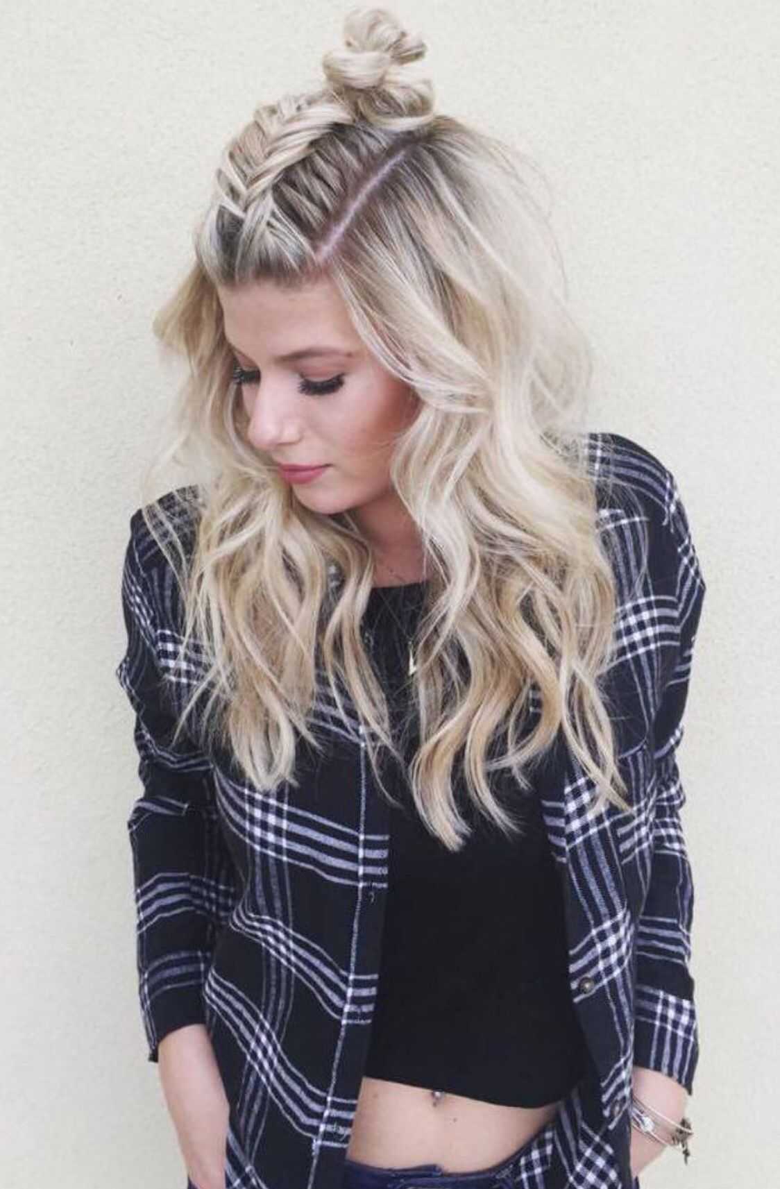 В тренде воздушные пучки с ниспадающими прядями, строгие укладки с зачесанными назад волосами и собранными в тугой пучок, игривые прически с французским плетением и двумя пучками. Множество идей укладок с пучками вы найдете в фото-подборке в конце обзора.