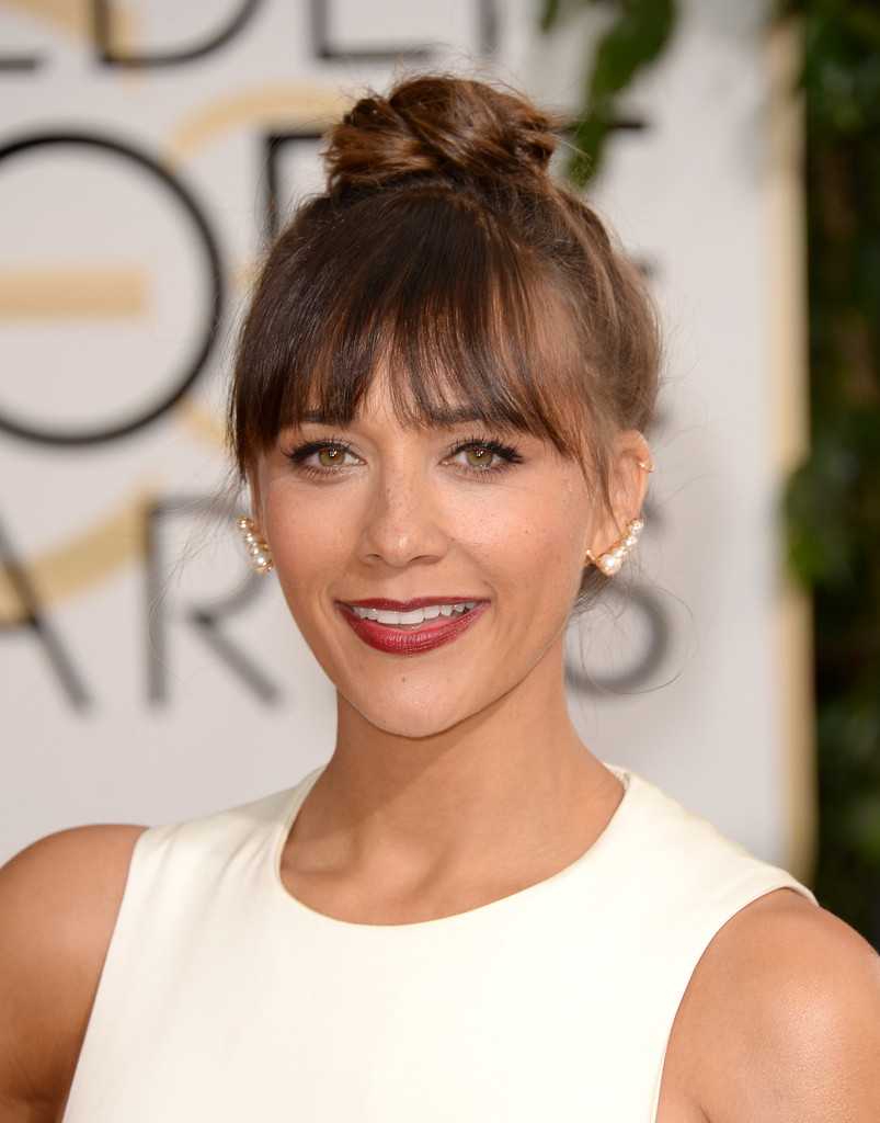 Трендовые объемные прически на средние волосы хорошо сочетаются с челками