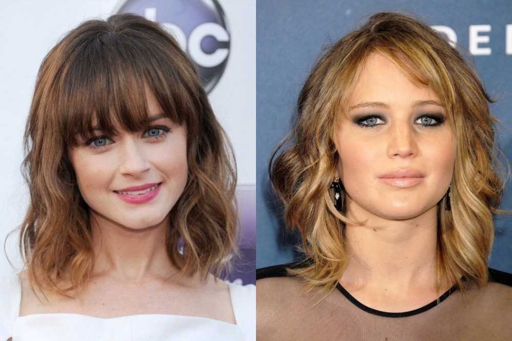 - градуировка на волосах средней длины превосходно корректирует овал лица, особенно если к прическе добавить косую челку;