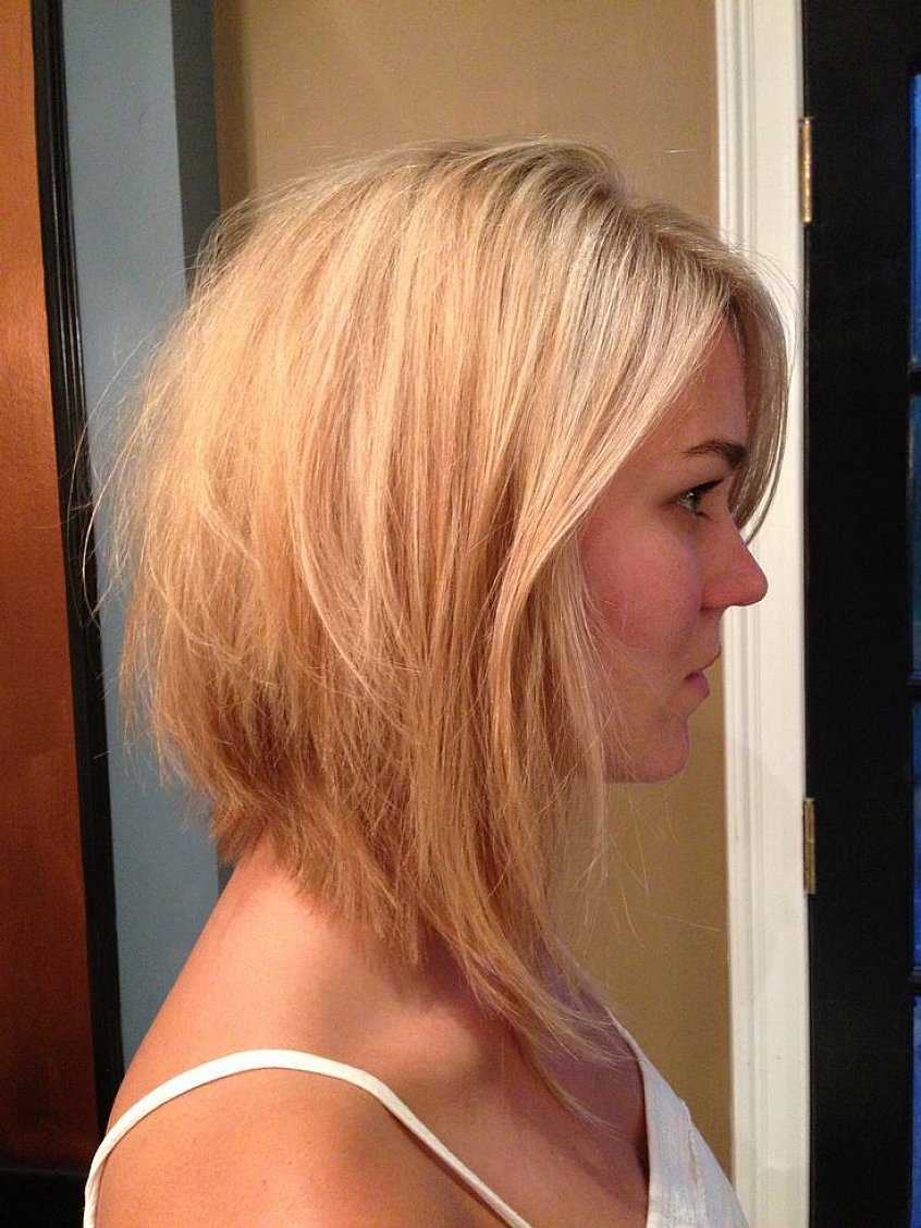 В отличие от простого удлиненного боба каре данная стрижка имеет резкий и существенный скачек в длине в районе лицевых локонов.