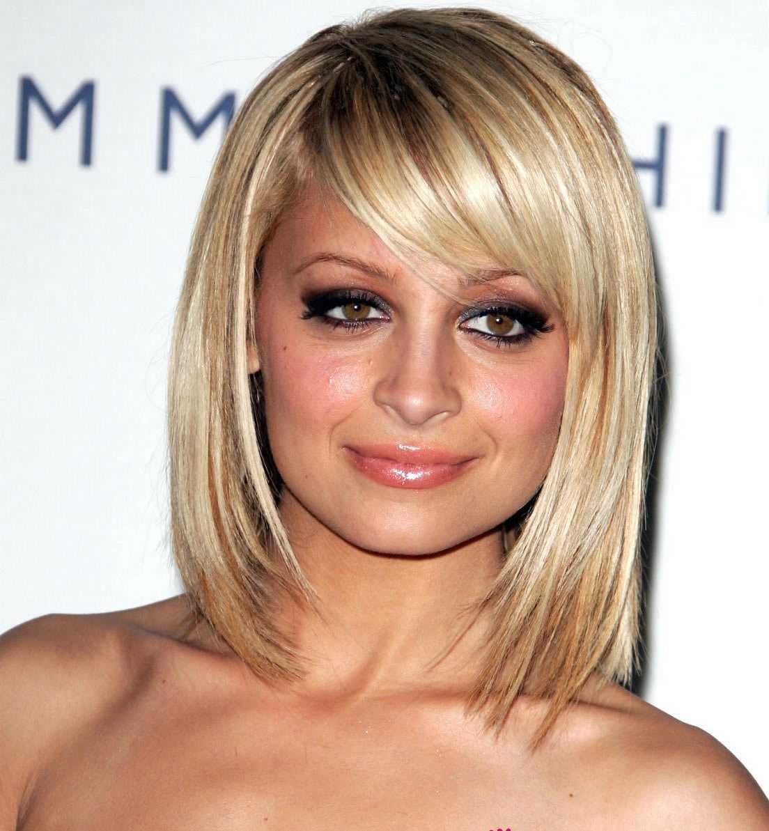 - косая челка с плавно оформленными краями визуально смягчает квадратный тип лица;