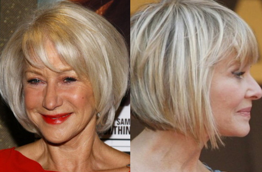 Сейчас в тренде боб без челки с косым пробором и мягкими волнами. Цвет волос подбирайте индивидуально. После 60 лет отличной идеей станет радикальный блонд, особенно, если вы скептически относитесь к седине.