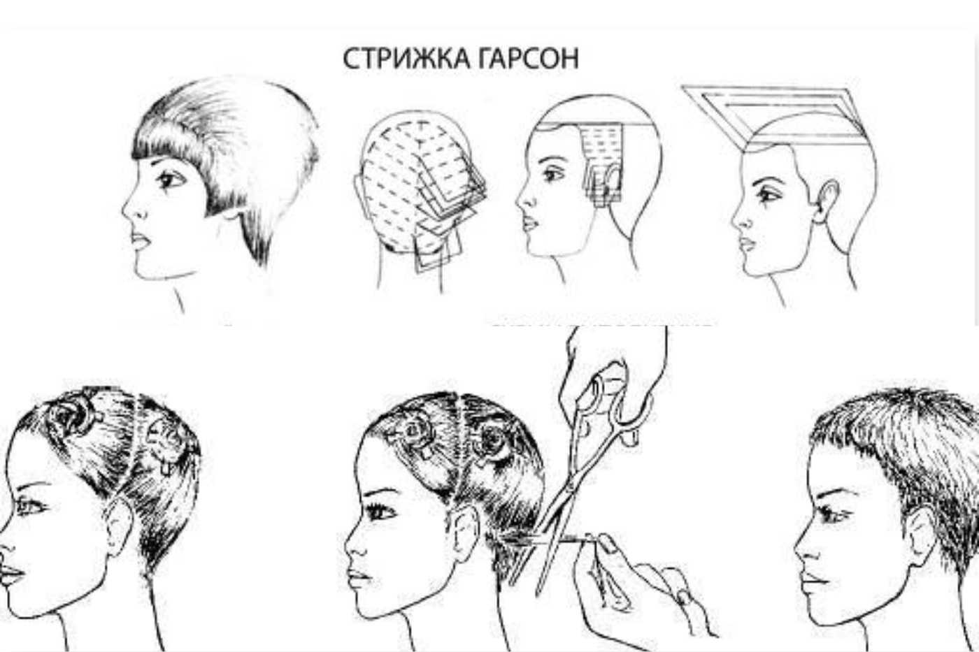Схема стрижки гарсон выглядит следующим образом: