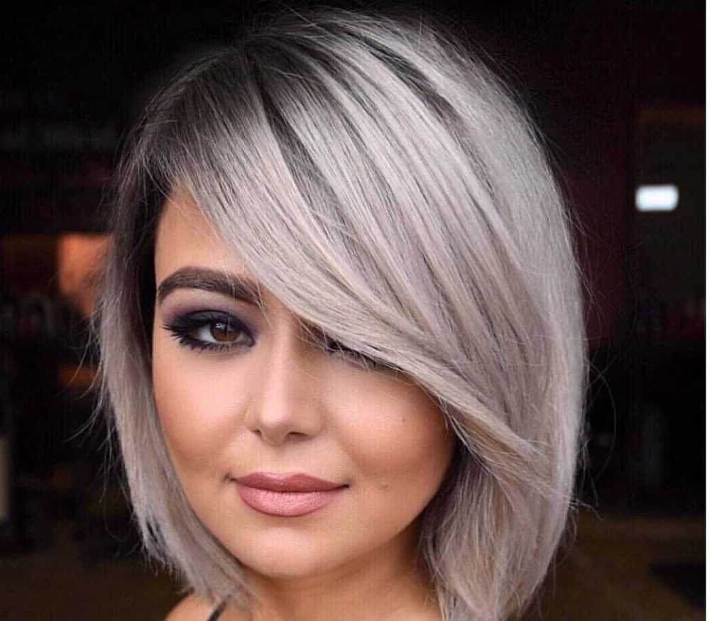 гладкие удлиненные пряди, челка, скошенная набок, слегка вытянет лицо, уменьшая пухлость щек;