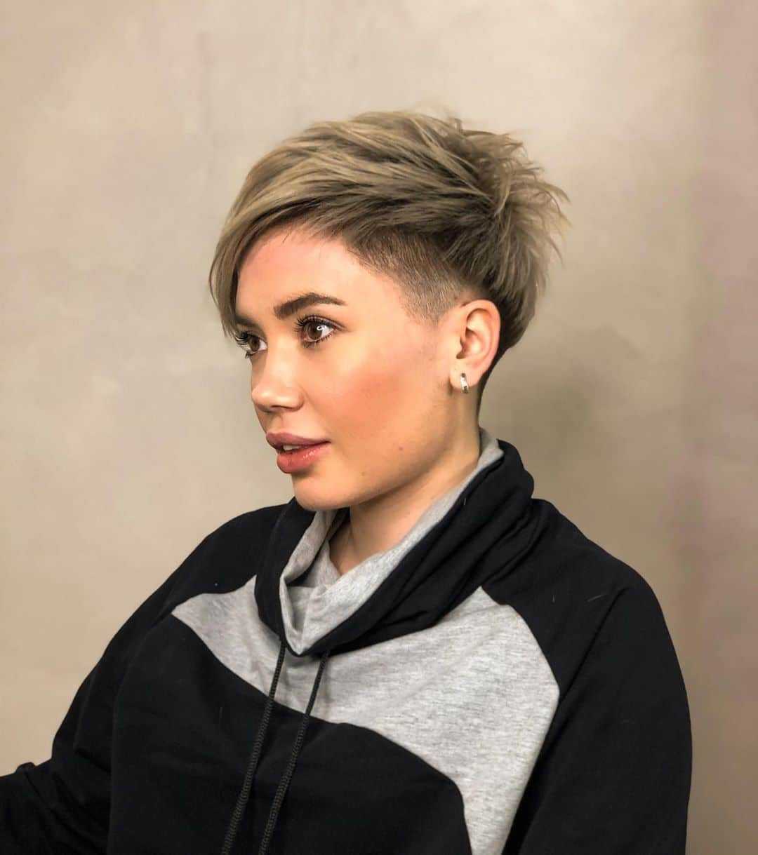 Пикси с коротким затылком и объемной макушкой представляет собой короткую стрижку, в которой на затылке волосы короче, чем основная длина. При этом волосы на затылке могут быть либо выбриты, либо укорочены с помощью ножниц.