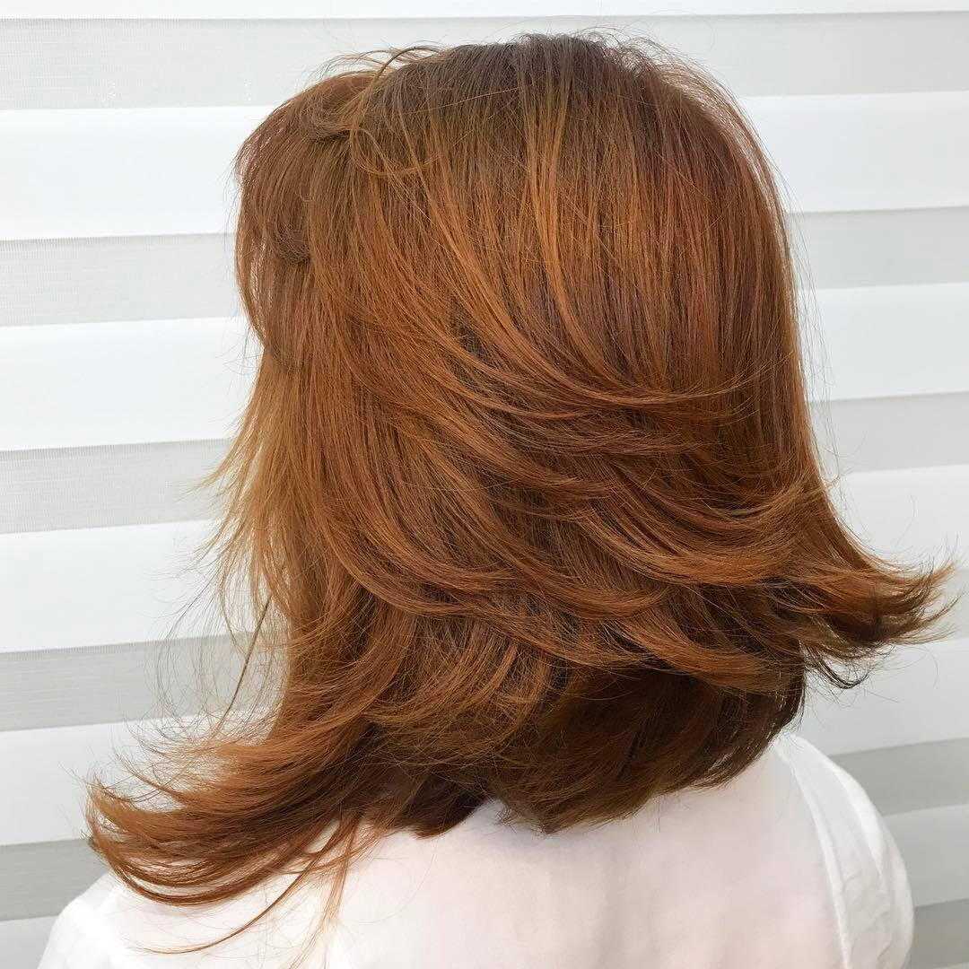 Каскад всегда в тренде и привлекательно выглядит на средней длине. Он вносит в женский образ небольшую небрежность, вместе с тем легкость и романтичность. Такой тип видоизменяется добавлением челки, элементов асимметрии или укорачиванием затылочной области.