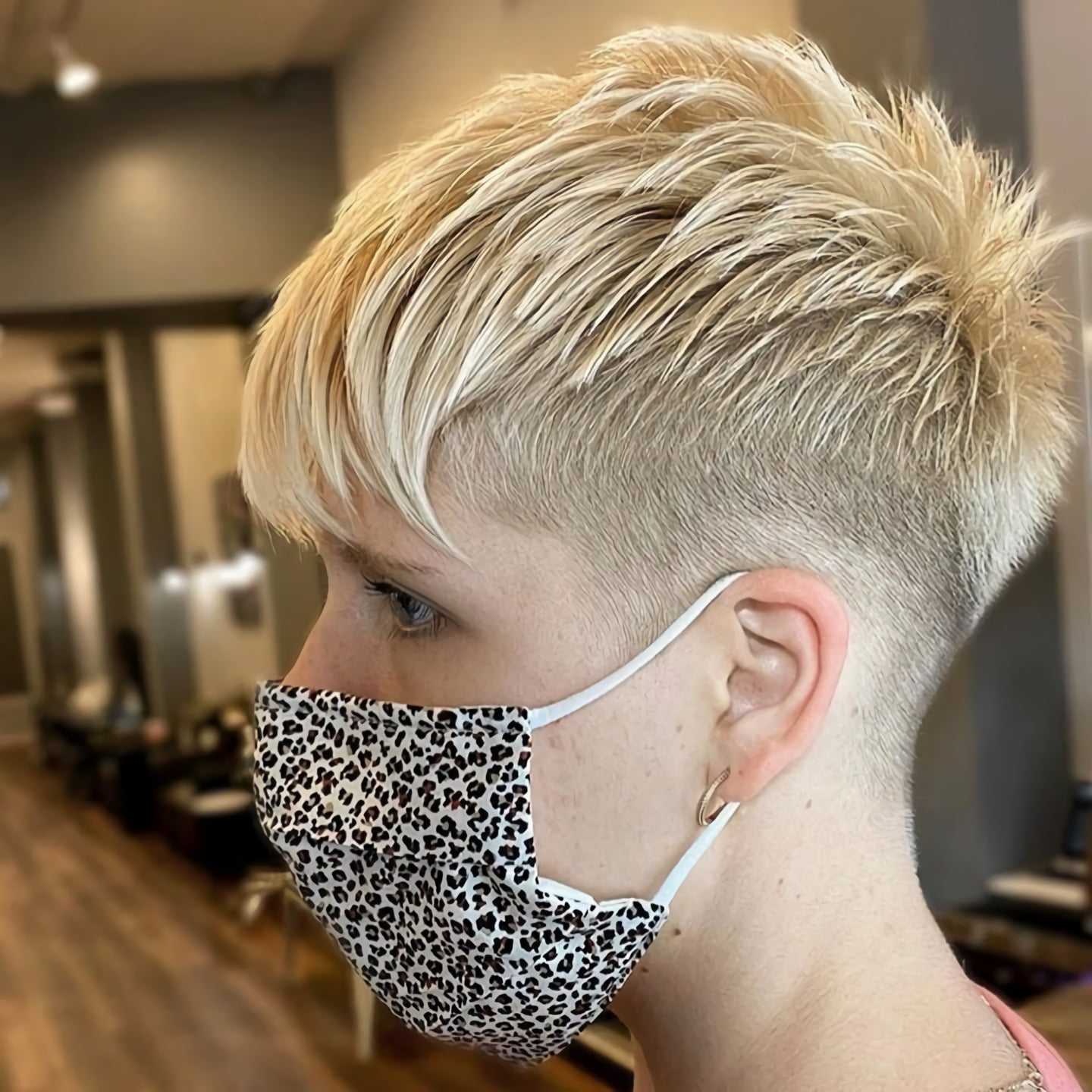 Еще один трендовый вариант – выбрить затылок. Сама длина может укорачиваться до экстравагантного ежика. Такой вариант пикси подойдет для молодых девушек, которые любят выделяться.