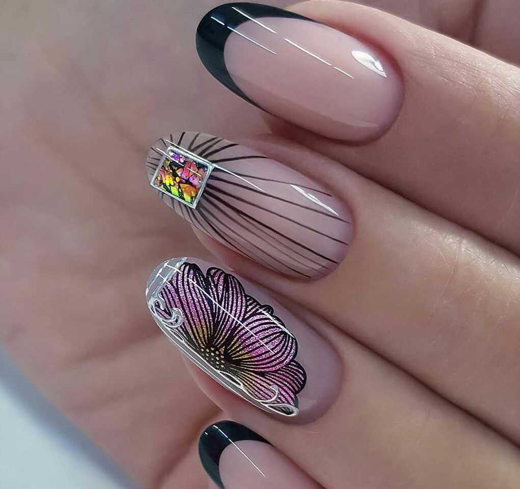 Фото: оригинальная идея нейл-арта для лета 2019Если нравится черный дизайн ногтей, то в 2019 году этот тренд потеряет свою актуальность, но только в «чистом» виде. То есть черный цвет можно сочетать с другими оттенками, как бы разбавляя его и делая более интересным.