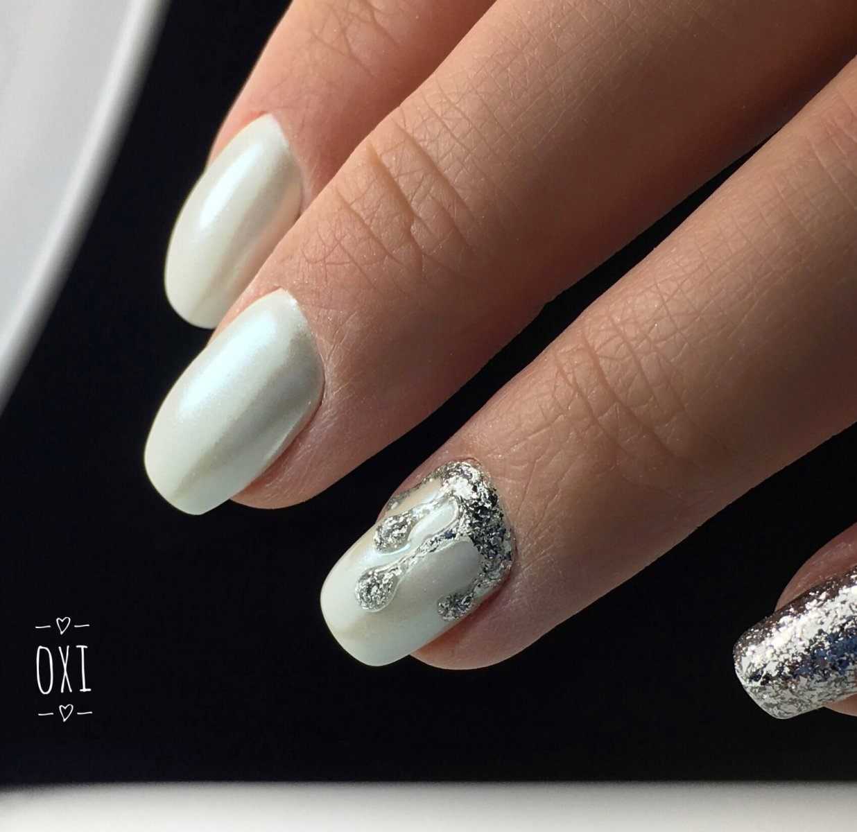 Когда серебряный оттенок уже выбран, подобраны все второстепенные цвета, можно приступить к выбору желаемого рисунка и тут на помощь придут модные образцы маникюра: