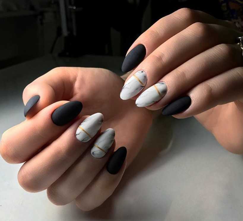 Мраморный черно-белый маникюр 2022 фото идеи