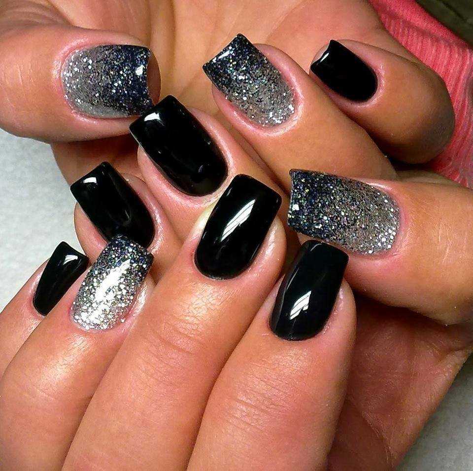 Черный дизайн маникюра с серебром 2019: